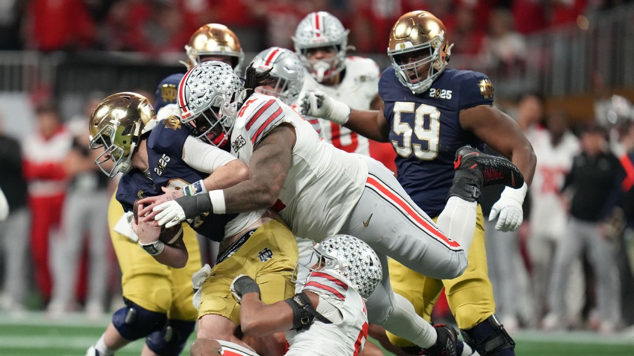 Two of the teams Ohio State took down during its CFP run finished right behind the Buckeyes in stop rate. Texas ranked No. 2 (76.9%) and Tennessee was No. 3 (76.8%) in the final season standings. Notre Dame was No. 2 entering the national championship game and dropped down to fifth following its 34-23 defeat. Now the Irish are hunting for a new DC as well after losing Al Golden to the Cincinnati Bengals.